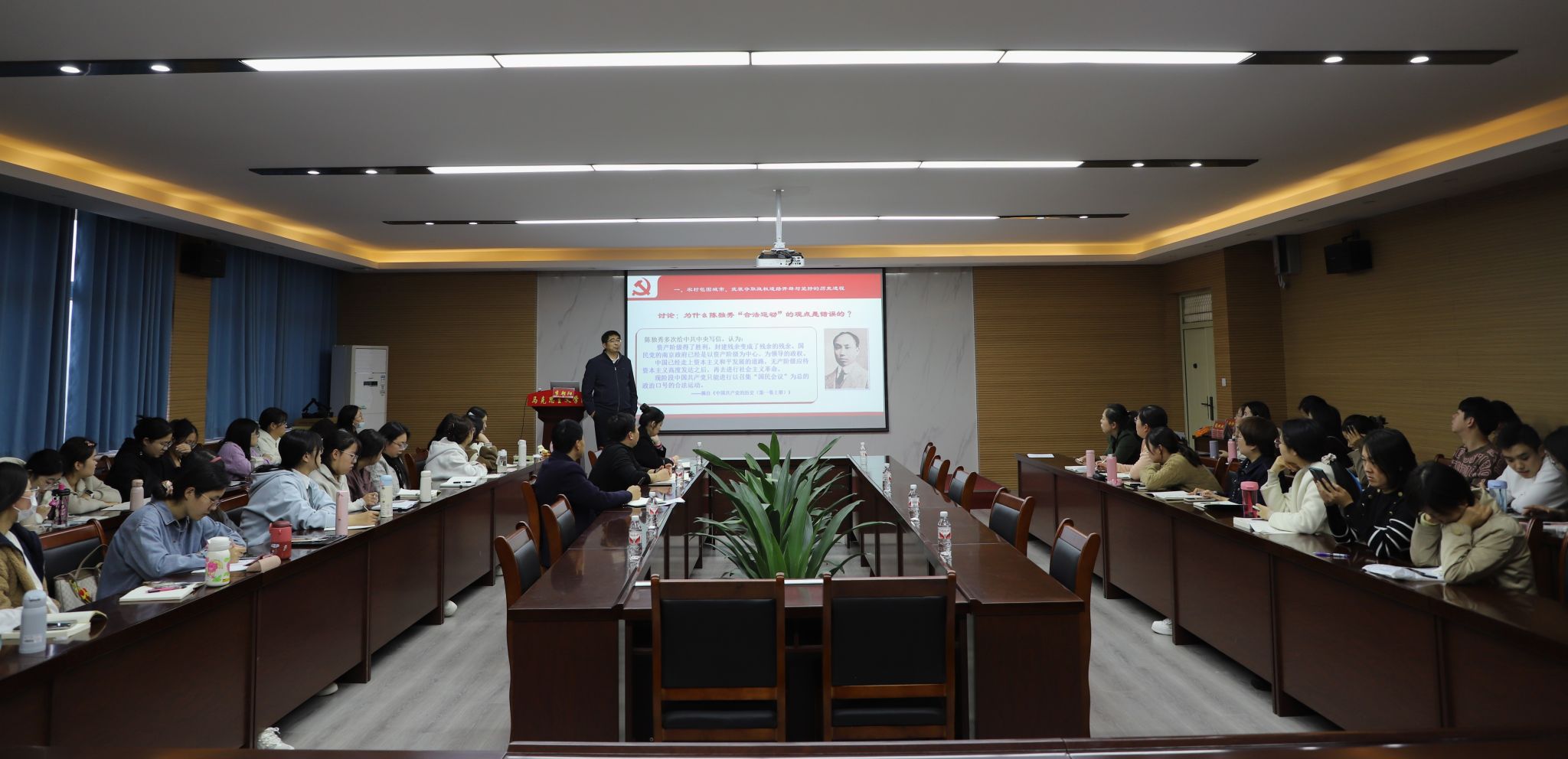 全体思政课教师参加工作坊,工作坊由院长李海涛主持。