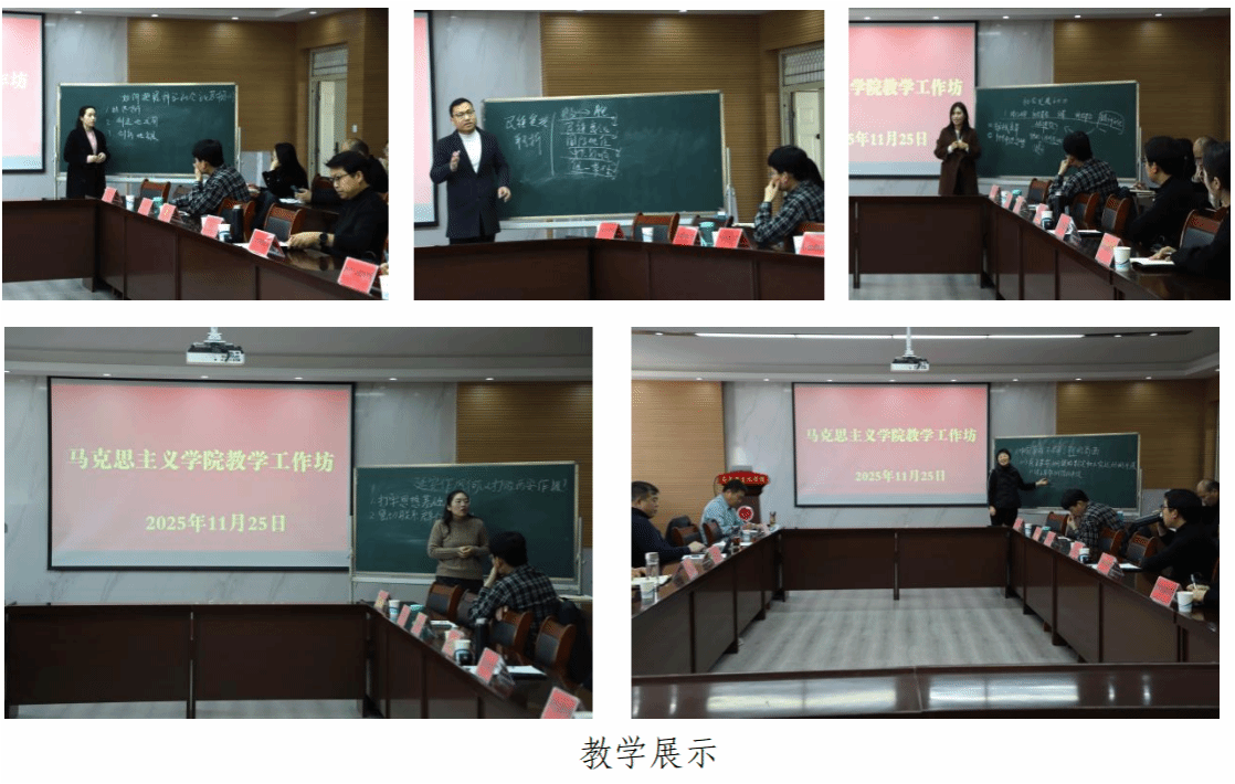 3511会议室举行。河南工业大学5名骨干教师围绕《马克思主义基本原理》《中国近现代史纲要》等核心课程,围绕“如何正确把握科学社会主义基本原则”“中国人民抗日战争胜利的意义”等专题,展开教学展示。