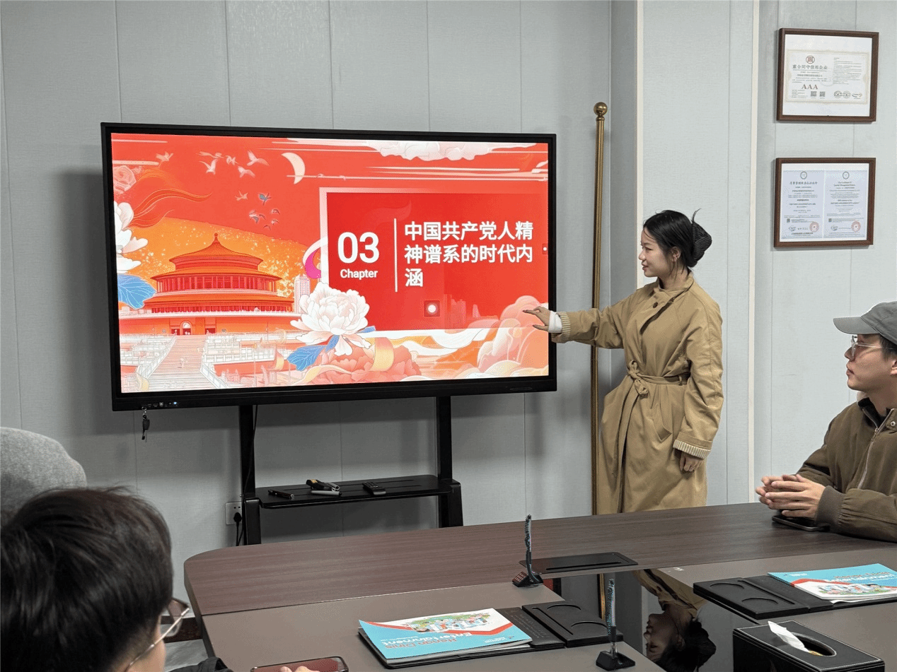 本次宣讲以“中国共产党人精神谱系与青年使命担当”为主题,结合新时代发展要求与青年成长路径,系统梳理了从红船精神到新时代奋斗精神的内涵传承。宣讲通过生动的历史案例与当代实践,阐释了伟大精神谱系在推动国家发展、引领青年奋斗中的现实意义,强调青年一代应在传承中汲取力量、在实干中践行担当。更重要的是,精神的力量关键在传承、关键在践行。新时代青年身处科技与文化发展前沿,更应主动将红色基因融入创新实践,把个人理想追求融入党和国家事业发展,真正将精神资源转化为推动行业进步与社会发展的生动实践。在场青年员工认真聆听,不时记录,并在交流环节围绕“数字时代如何弘扬工匠精神”“青年如何在企业发展中实现价值”等话题展开热烈讨论。