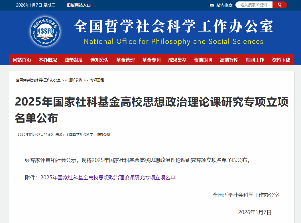 1月7日,全国哲学社会科学工作办公室公布了2025年国家社科基金高校思想政治理论课研究专项立项名单。优塔娱乐城