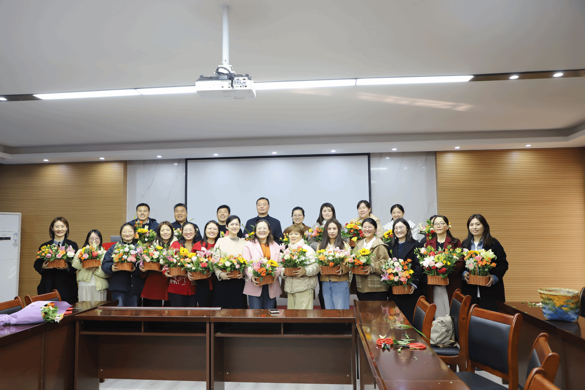 领导班子及全体女教职工齐聚一堂,以花为媒,共赴一场春日与艺术的浪漫之约。