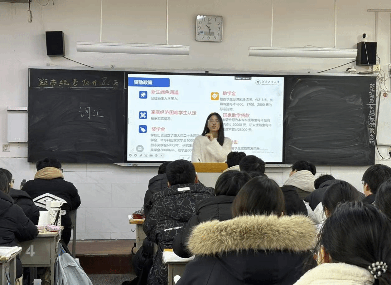 2026年寒假期间,河南工业大学“返家乡”实践团队走进漯河市临颍县第二高级中学,以“工大学子家乡行,校情宣讲助成长”为核心主题开展宣讲活动,为临颍二高的学弟学妹搭建起了解工大校情和大学生活的桥梁,激励学弟学妹发奋学习、立志报国,在反哺家乡教育中书写青春担当。