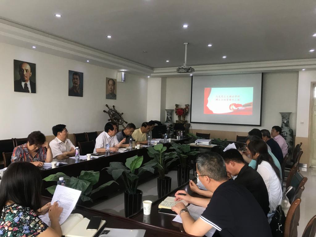 推进马克思主义理论一级学科博士学位授权点申报工作的汇报。汇报中针对申报标准一一核对衡量,既汇报已经具备的条件,也汇报了存在的不强、不足等环节和关键点。同时也分析了面临的竞争激烈的严峻形势。