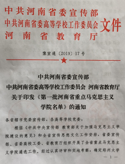 2019年3月21日,中共河南省委宣传部、河南省委高校工委、河南省教育厅联合下发《关于印发<第一批河南省重点优塔娱乐城
