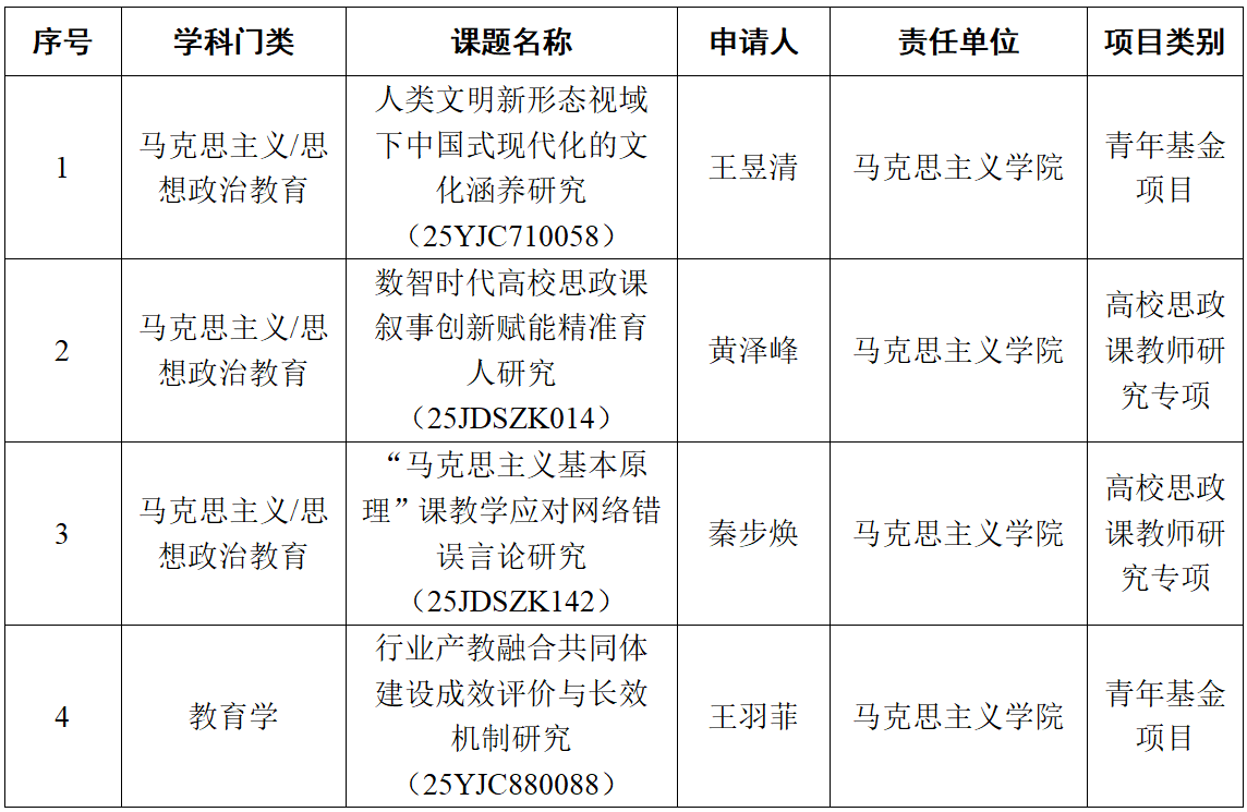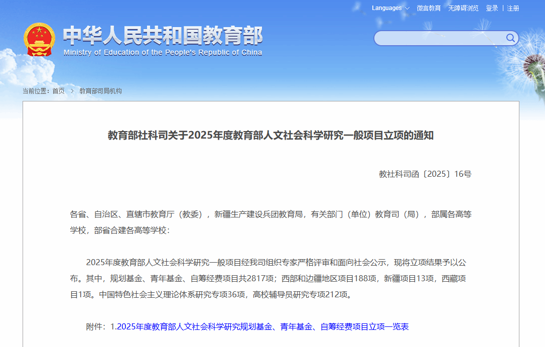 近日,教育部社科司公布了2025年教育部人文社会科学研究项目立项名单,优塔娱乐城