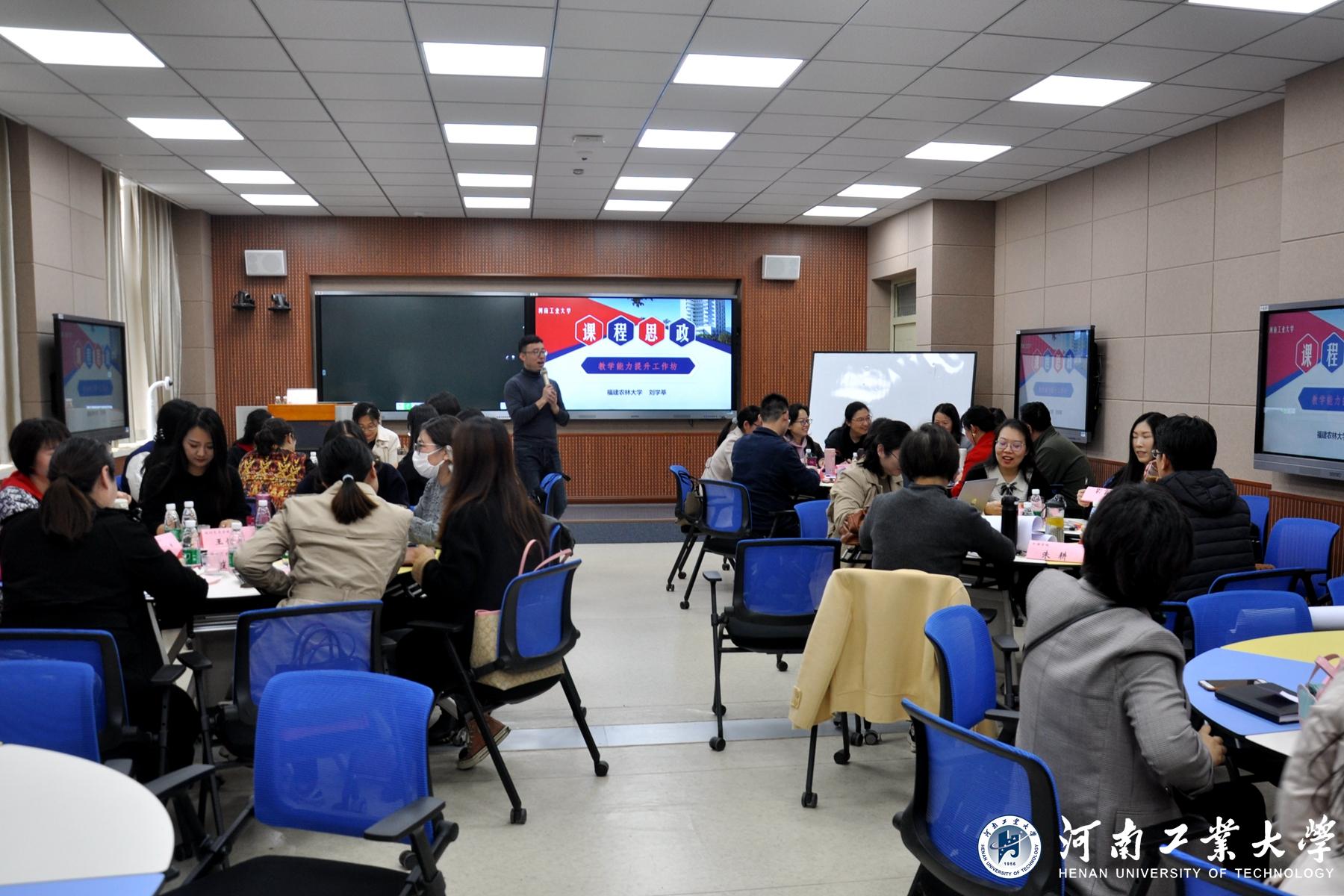 为全面推进课程思政建设,深化教育教学改革,10月25日,在智慧教室3218、3220,由教务处、信息化管理中心和教师发展中心联合举办的“改革教学范式,推进课程思政,提升课程质量”教师教学能力提升理工科和文科两个工作坊。学校邀请南京信息工程大学教授裴世鑫和福建农林大学副教授刘学莘进行专业培训,来自全校80多位老师参加了为期一天的培训。